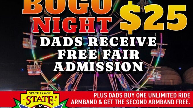 DAD’S BOGO NIGHT! Space Coast State Fair in Viera Feature Great Entertainment, Delicious Food! Opens at 5 p.m. Today