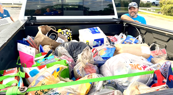 Donations collected during the event filled the back of a pickup truck, demonstrating the strong community spirit behind the cause.