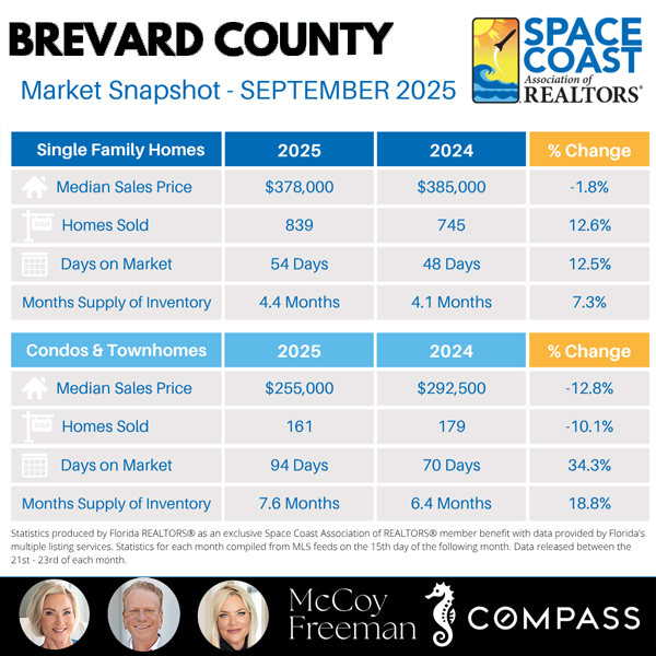 ABOVE VIDEO: Your trusted Space Coast real estate experts break down the September 2025 market update — where pending sales are rising, inventory is tightening, and sellers across Cocoa Beach, Viera, Satellite Beach, Melbourne and Brevard County are gaining the advantage.