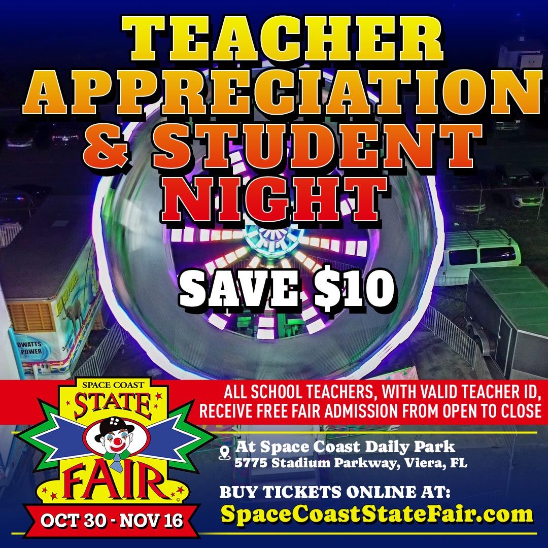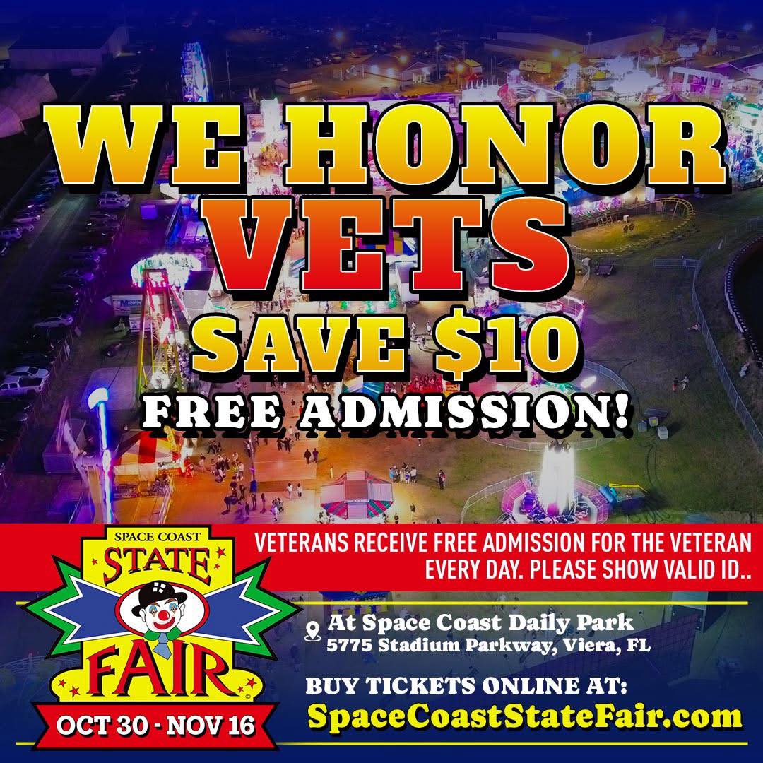 FREE UNLIMITED RIDES! Space Coast State Fair Honors Vets and Teachers Today With Free Admission! Fair Opens at 1 p.m.