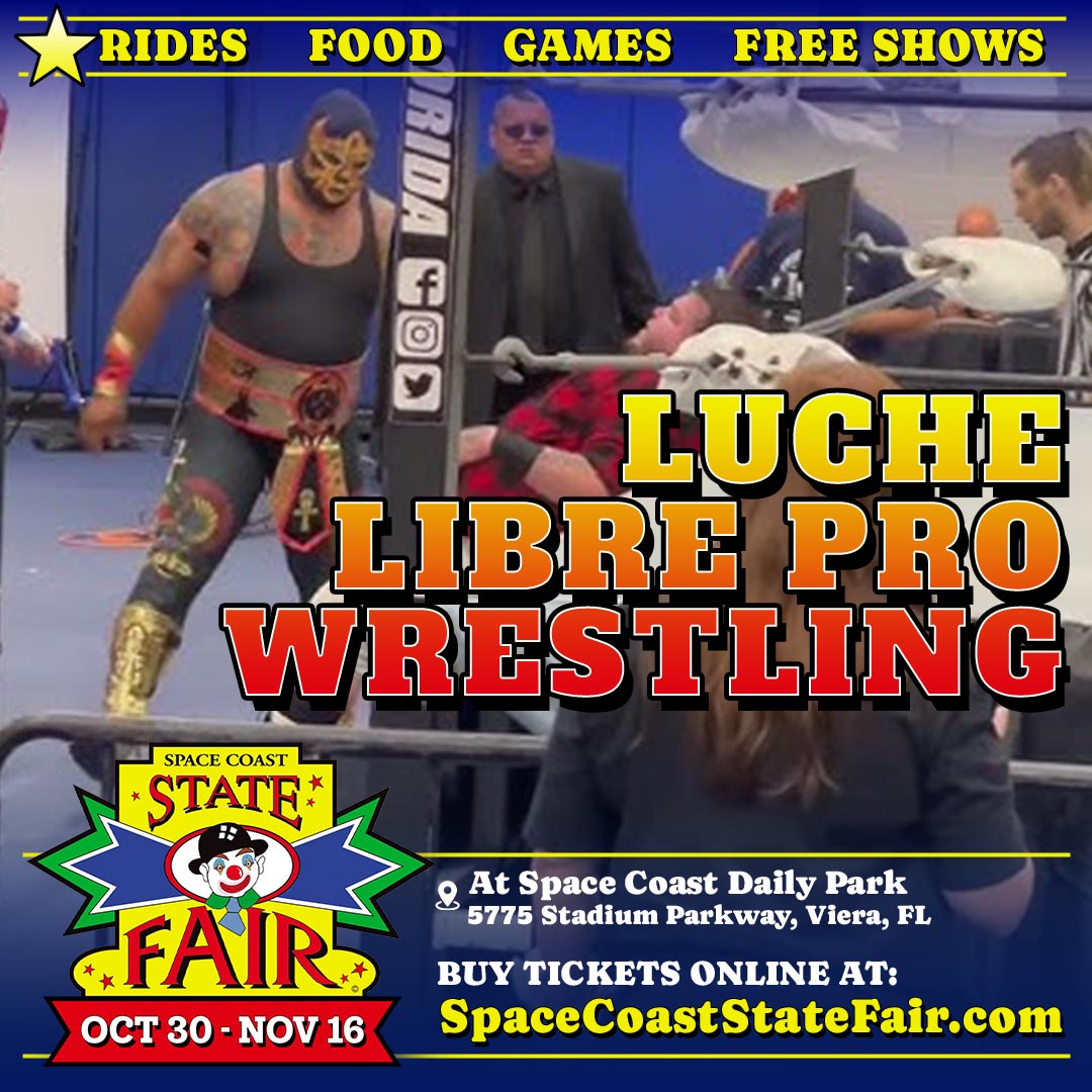 Watch live exciting Lucha Libre Wrestling at the Space Coast State Fair, every Friday, Saturday, and Sunday of the fair, which will run from Oct. 30 to Nov. 16 at Space Coast Daily Park in Viera.