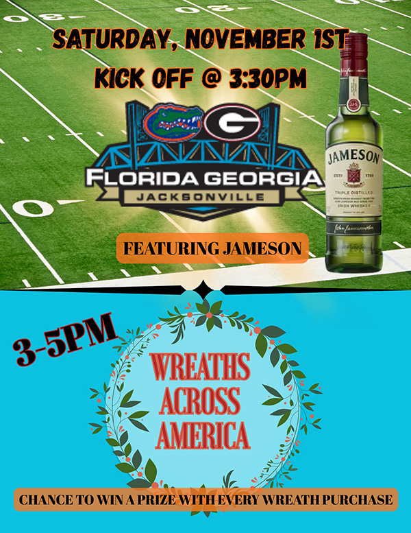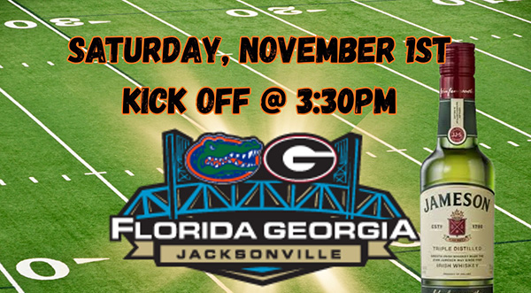 Adding to the excitement, Jameson Irish Whiskey will be on-site, offering samples and giveaways as fans gather to watch the Florida and Georgia teams compete on multiple televisions throughout the venue.