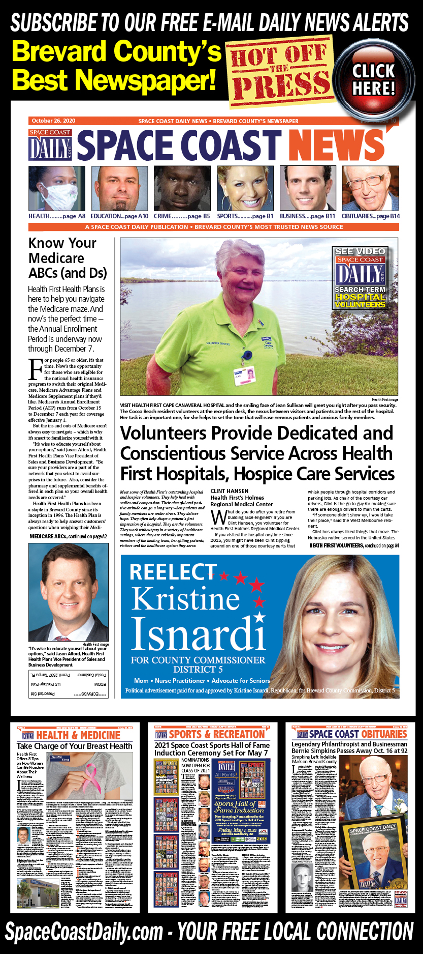 HOT OFF THE PRESS! October 26, 2020 Space Coast Daily News – Brevard County’s Best Newspaper