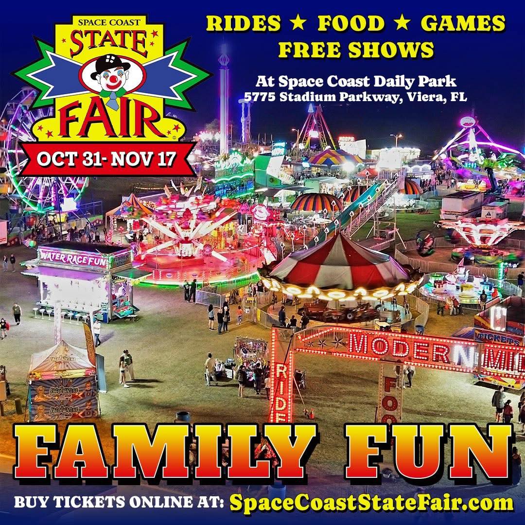 The Space Coast State Fair will be held from October 30 to November 16, at the Space Coast Daily Park located at 5775 Stadium Parkway in Viera.