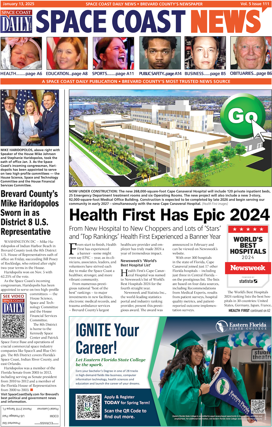 HOT OFF THE PRESS! January 13, 2025 Space Coast Daily News – Brevard County’s Best Newspaper