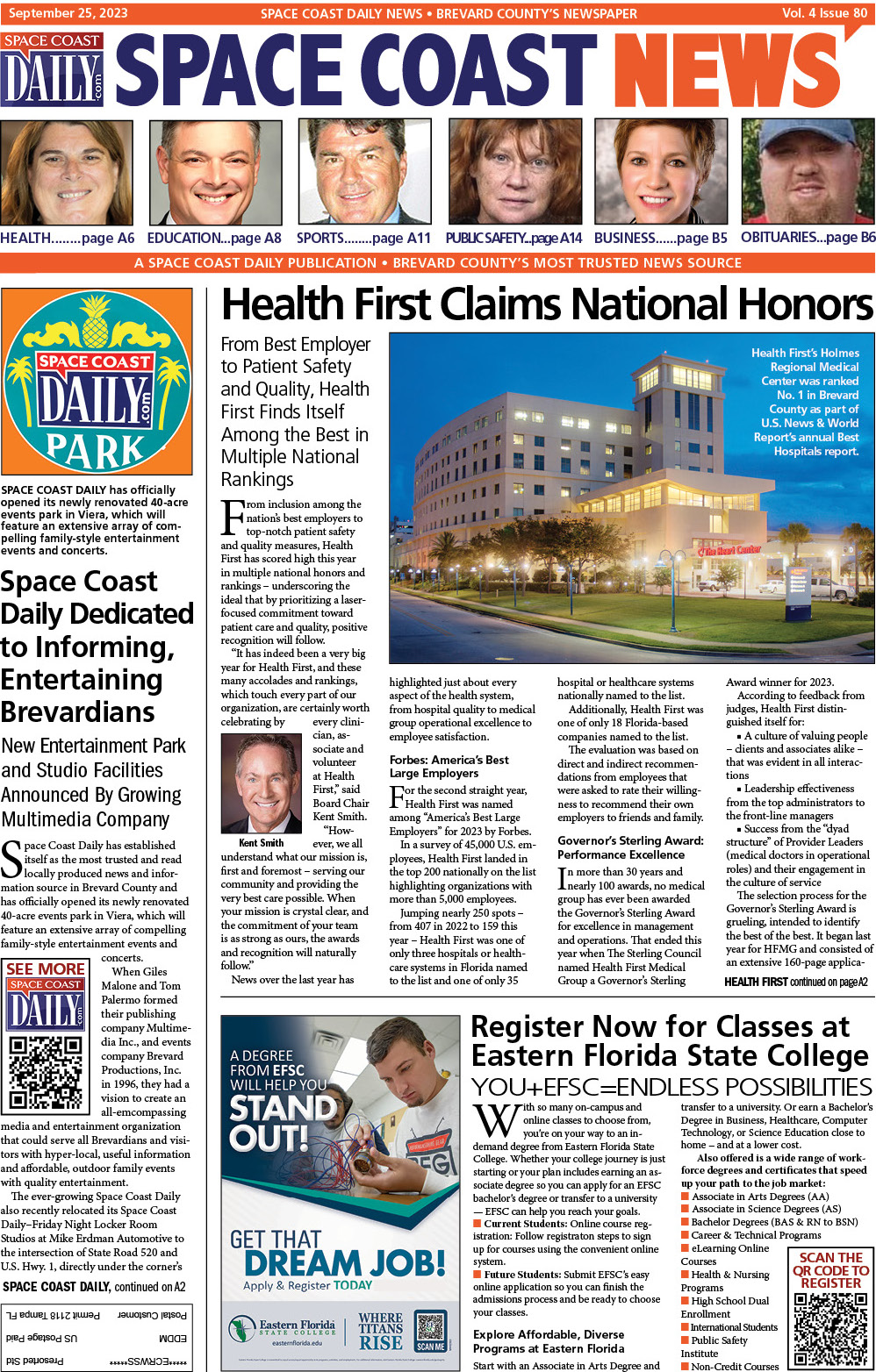 HOT OFF THE PRESS! September 25, 2023 Space Coast Daily News – Brevard County’s Best Newspaper