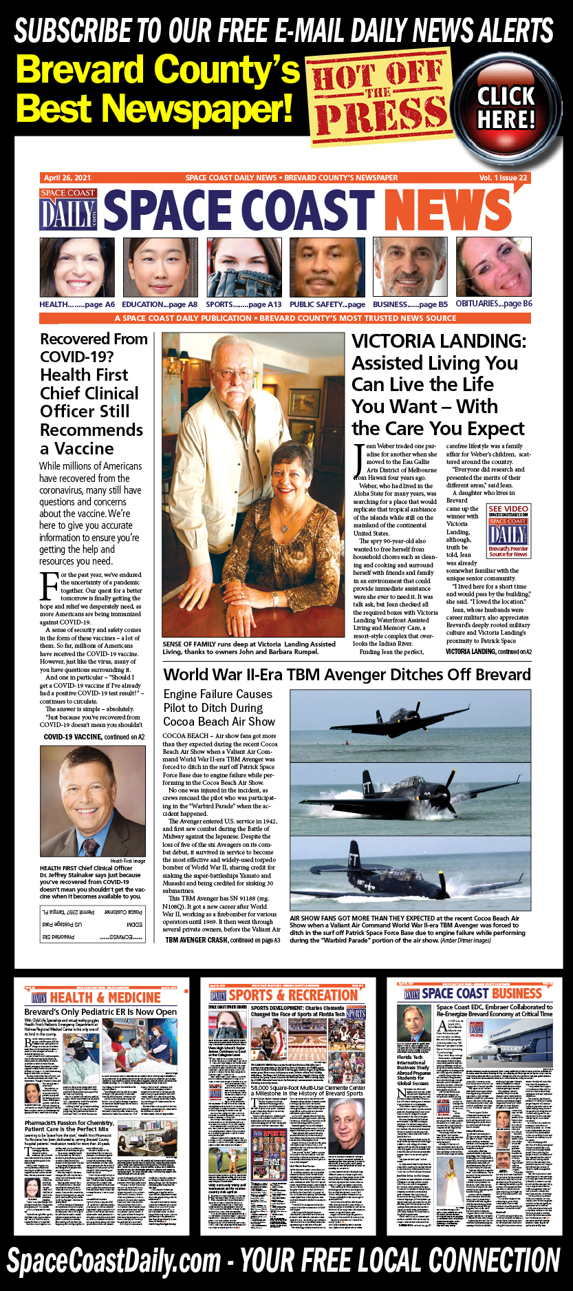 HOT OFF THE PRESS! April 26, 2021 Space Coast Daily News – Brevard County’s Best Newspaper