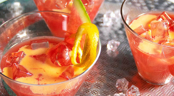 ■ Make it party-ready by preparing the watermelon-orange mixture ahead of time and chilling it in the refrigerator. Assemble glasses just before serving.