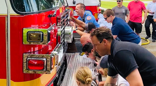The push-in ceremony is a time-honored custom dating back to the mid-1800s when horse-drawn fire apparatus had to be manually pushed back into the station after returning from a call.