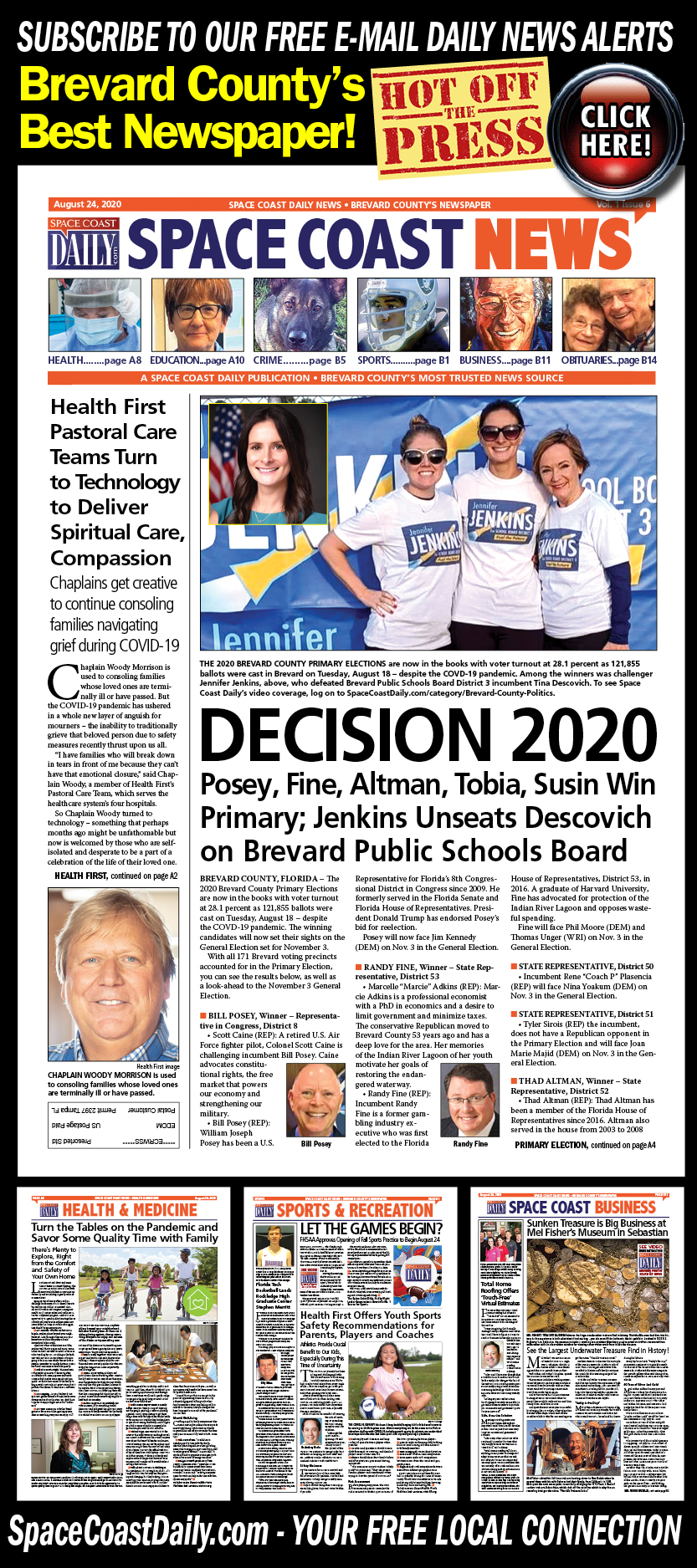 HOT OFF THE PRESS! August 24, 2020 Space Coast Daily News – Brevard County’s Best Newspaper