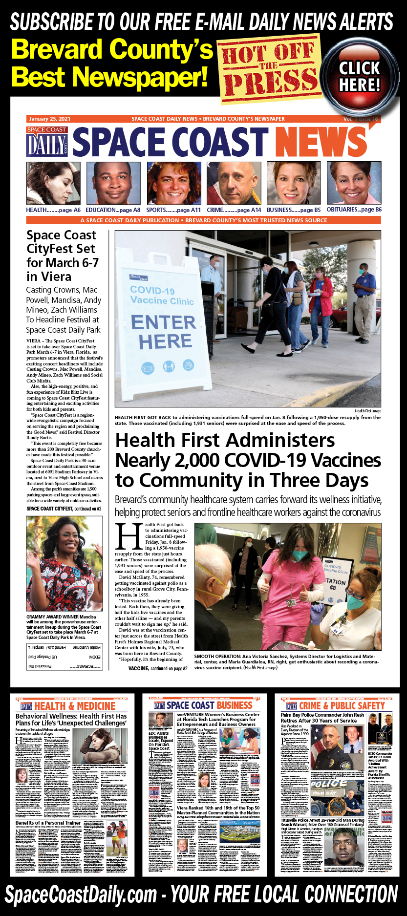 HOT OFF THE PRESS! January 25, 2021 Space Coast Daily News – Brevard County’s Best Newspaper